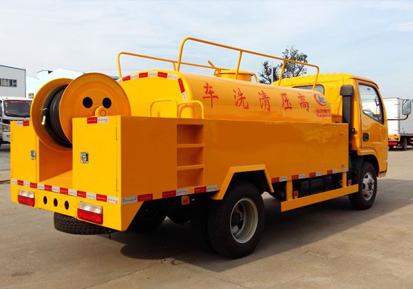 高壓清洗車(chē)也稱之為管道疏通車(chē),通過(guò)高壓水流產(chǎn)生的強(qiáng)大壓力沖開(kāi)被堵塞的管道。主要組成部分為罐體、高壓泵、液壓系統(tǒng)等。高壓清洗車(chē)主要用于清洗城市下水道、管道的沉積物、死角泥溝的疏通,也可用于清洗工業(yè)排液管道、壁面等,清洗公路、廣場(chǎng)地面。