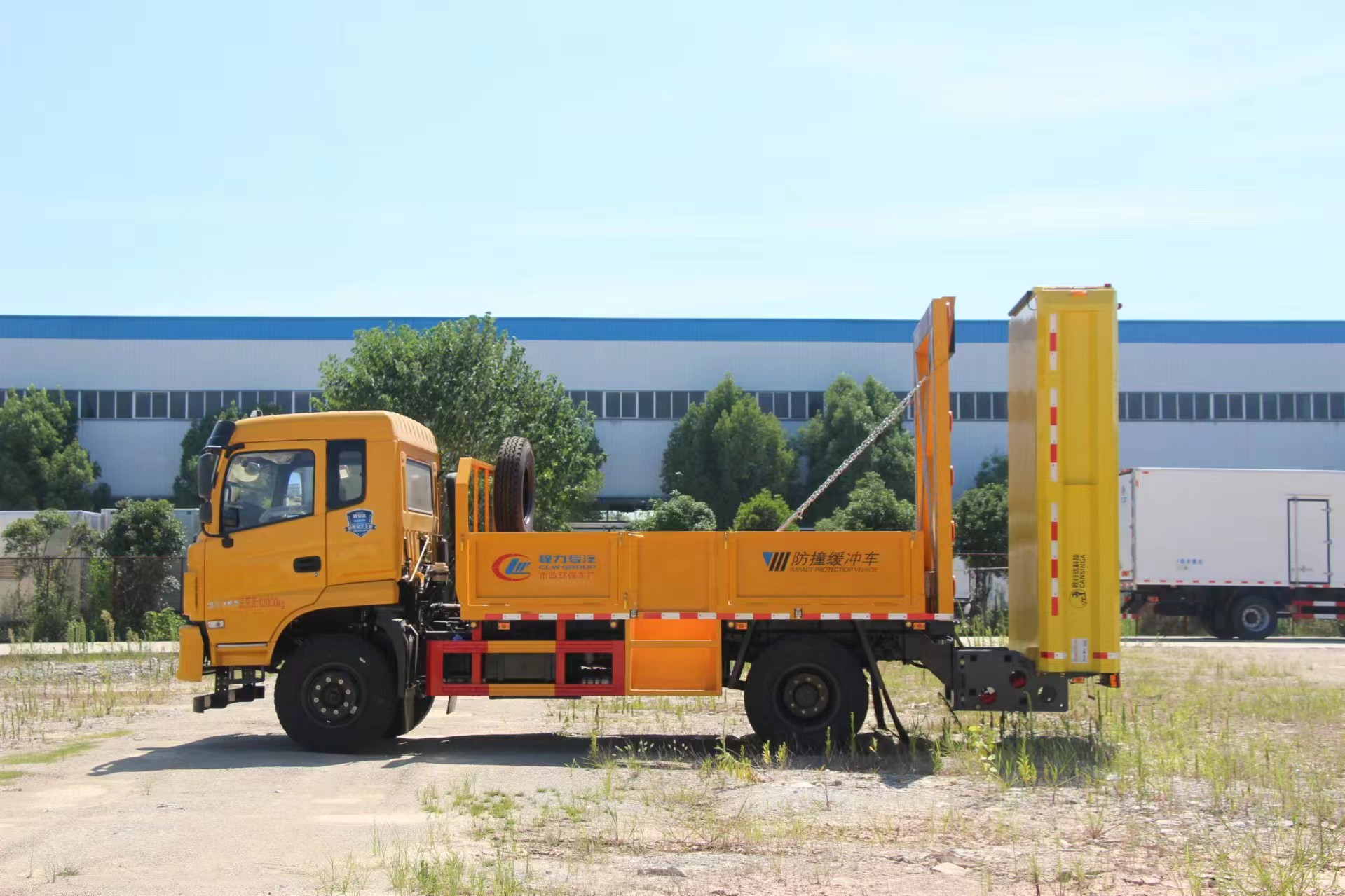| 上裝配置 | 采用Q235國標邊3mm底板花紋板4mm厚,箱體后部防撞緩沖模塊包采用國際知名技術產(chǎn)品100E防撞緩 沖模塊,防撞緩沖吸能模塊主要由車載防撞緩沖墊和導向標志架組成,充當施工作業(yè)車輛后方的緩沖衛(wèi)士。 如若發(fā)生追尾事故,能夠在肇事車輛和前方施工作業(yè)區(qū)域之間構建一個緩沖區(qū)域,通過機具結構變形吸收撞 擊的能量,最大限度地降低被保護人員及設備遭到碰撞的幾率。高性能液壓系統(tǒng),可實現(xiàn)快速舉升和落下操 作,方便設備運輸轉(zhuǎn)場,一鍵啟動功能,舉升和落下防撞裝置,當防撞裝置未完全落下到工作位置或舉升到 垂直運輸位置時,會有自動警告音提示。 | ||