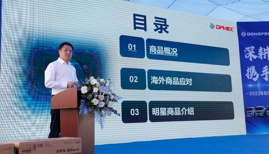 中國東風(fēng)汽車工業(yè)進(jìn)出口有限公司總經(jīng)理助理?xiàng)顫诨顒?dòng)中,做了重要講話。他強(qiáng)調(diào),首先要感謝程力集團(tuán)一直以來,與東風(fēng)公司全面戰(zhàn)略合作和大力支持,并向參加推薦會的來賓與銷售經(jīng)理表示誠摯的問候。