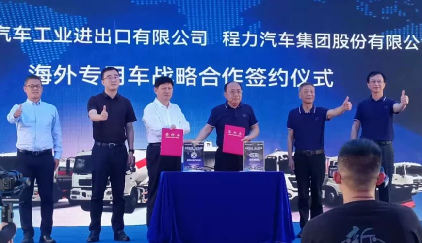 在這次線下大型東風(fēng)商用車海外市場新產(chǎn)品推薦會上,中國東風(fēng)汽車工業(yè)進(jìn)出口有限公司與程力汽車集團(tuán)股份有限公司聯(lián)合舉行了海外專用車戰(zhàn)略合作簽約儀式,雙方高層領(lǐng)導(dǎo)簽約后合影紀(jì)念。